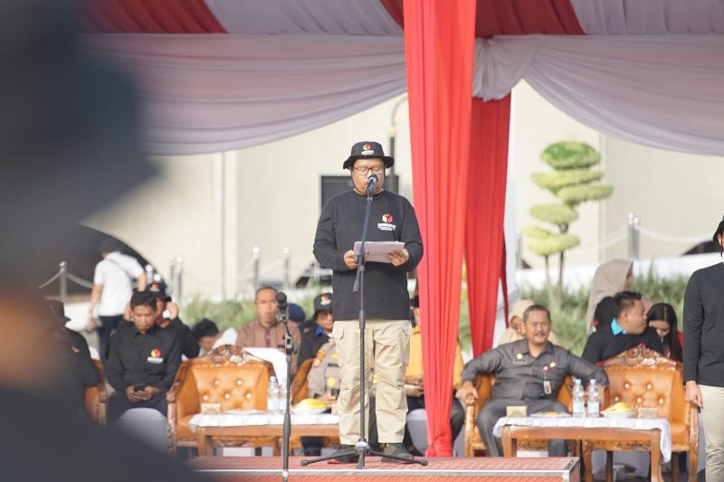 Ketua Bawaslu Riau Alnofrizal saat menyampaikan arahan pada apel siaga pengawasan kampanye