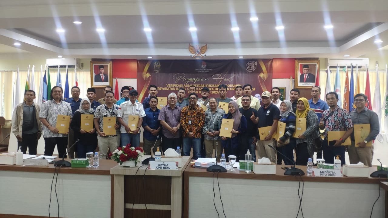 Penyerahan Berita Acara Hasil Verifikasi Administrasi Perbaikan dokumen persyaratan bakal calon anggota DPD Provinsi Riau
