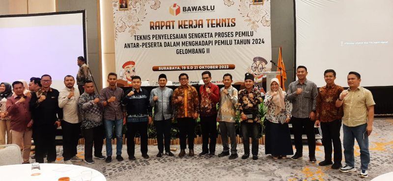 Bawaslu Riau, Surabaya - Koordinator Divisi Hukum dan Penyelesaian Sengketa Bawaslu Riau Indra Khalid Nasution hadiri Rapat Kerja Teknis Penyelesaian Sengketa Proses Pemilu Antar Peserta dalam menghadapi Pemilu 2024, Kamis (19/10/2023) di Harris Hotel & Convention Bundaran Satelit Surabaya.