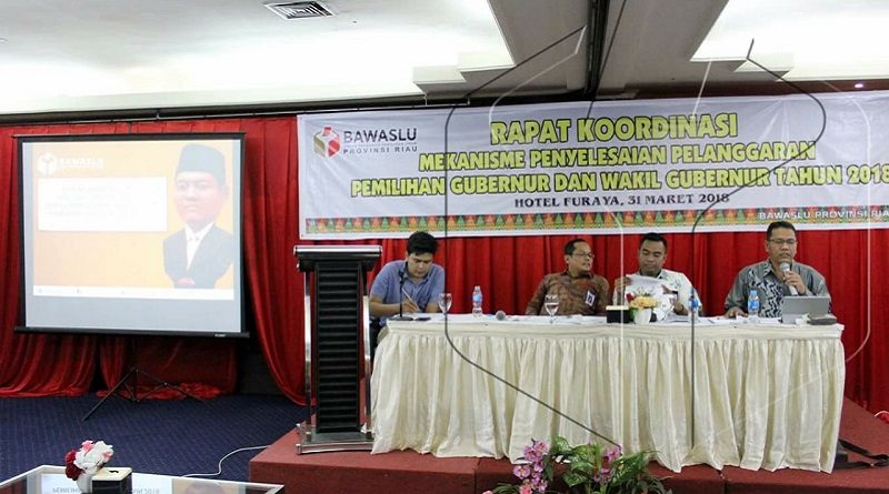 Hal itu diungkapkan dalam sambutannya pada kegiatan Rapat Koordinasi Penanganan Pelanggaran Pemilihan Gubernur dan Wakil Gubernur Riau Tahun 2018, Sabtu, 31 Maret 2018 di Hotel Furaya Pekanbaru.