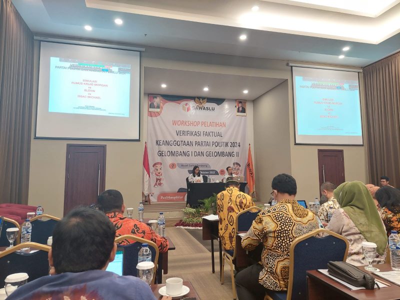 Bawaslu Riau ikuti Workshop Pelatihan Verifikasi Faktual Keanggotaan Partai Politik Pemilu 2024 Gelombang II oleh Koordinator Divisi Pencegahan, Parmas dan Humas, Amiruddin Sijaya, S.Pd., MM serta Jabatan Fungsional analis sengketa dan staf bagian pencegahan Bawaslu Provinsi Riau.
