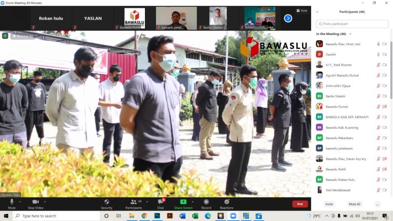 Tidak hanya staf sekretariat Bawaslu Riau saja yang mengikuti kegiatan hari ini. Bawaslu dari Kabupaten/Kota se-Riau juga ikut hadir secara daring melalui video conference Zoom Meeting.