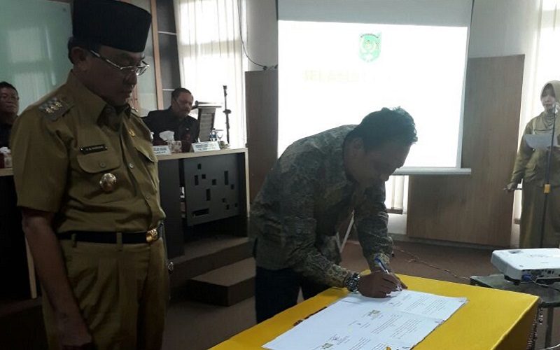 Penandatanganan Naskah Perjanjian Hibah Daerah (NPHD) antara Bupati Indragiri Hilir dengan Panitia Pengawas Pemilihan Kepala Daerah dan Wakil Kepala Daerah Kabupaten Indragiri Hilir tahun 2018 dan Rapat Koordinasi Pejabat Pemerintah Daerah Kabupaten Indragiri Hilir, Selasa (5/9).